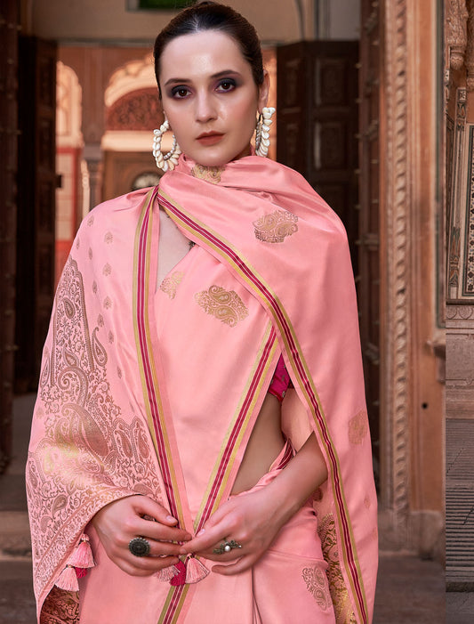 Royal Radiance Pure Satin With Zari Weaving & Contrast Women Saree