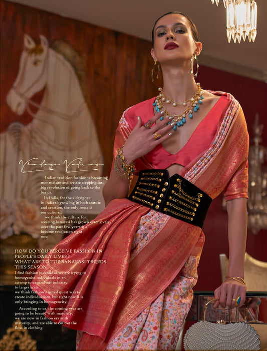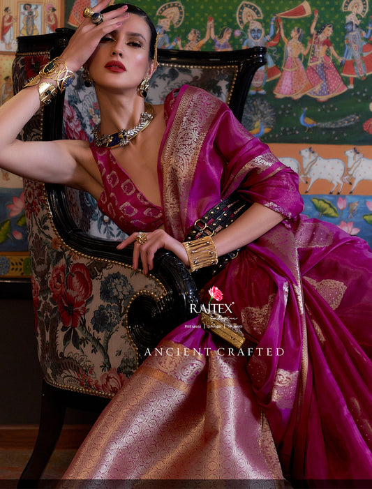 Luxurious Women Multi Zari Tissue Handloom Weaving Saree