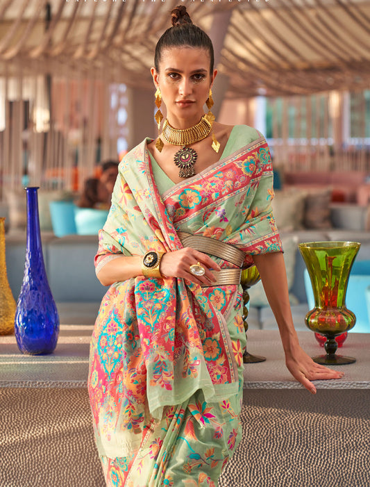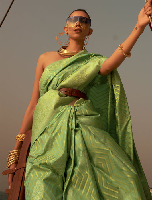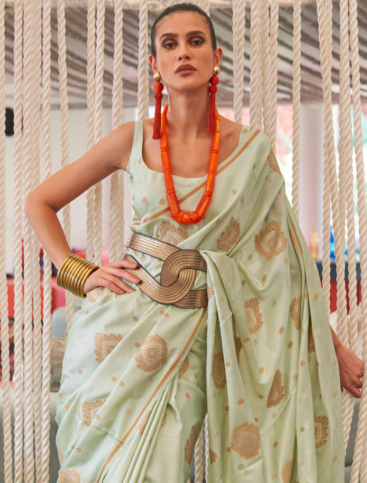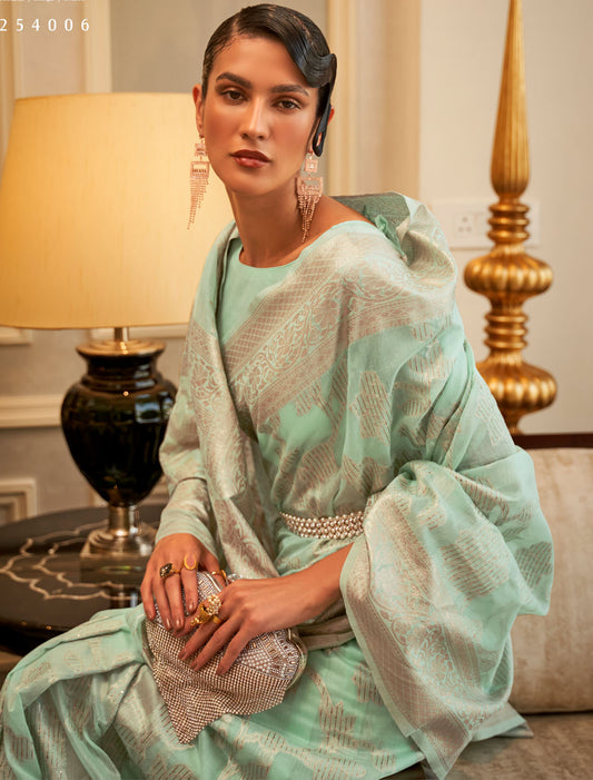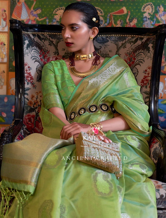 Pista Green Handloom Weaving Party Wear Silk Saree