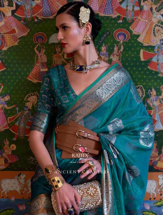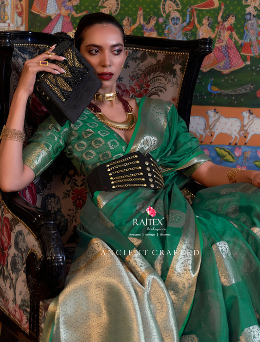 Green Handloom Silk Weaving Party Wear Saree For Women