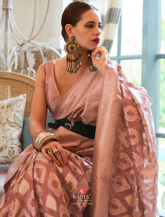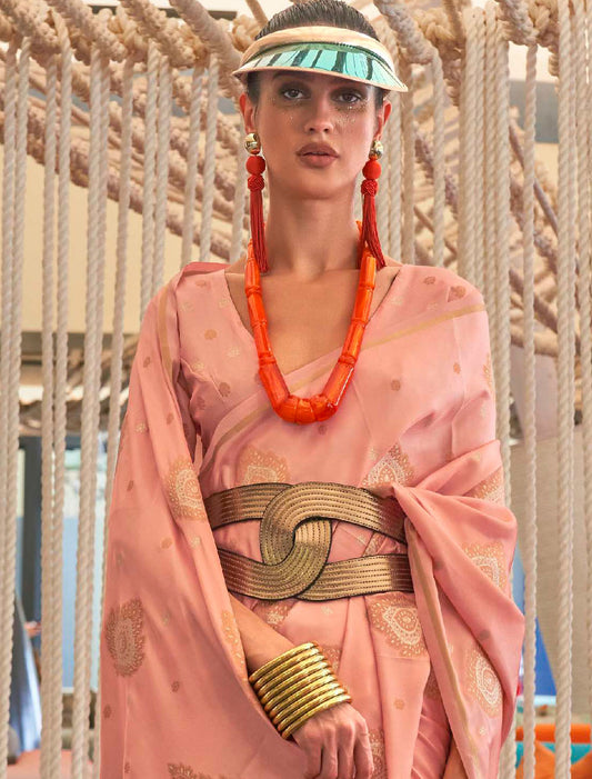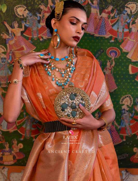 Peach Silk Party Wear Handloom Weaving Women Saree