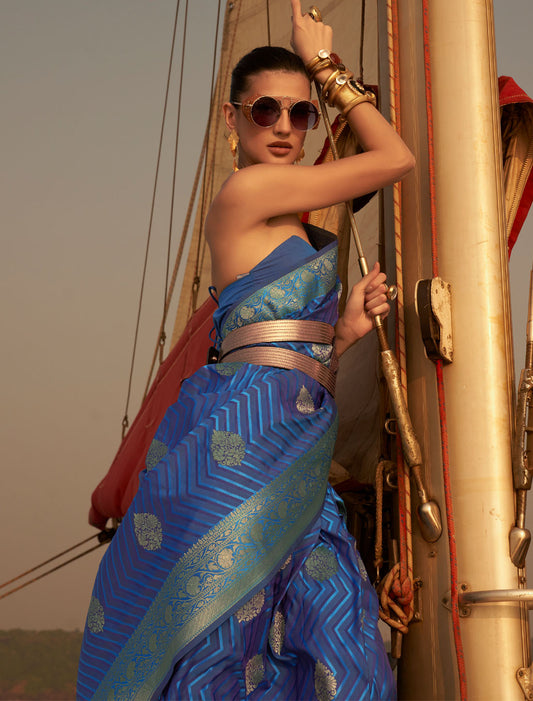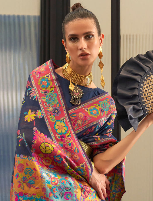 Navy Blue Elegant Silk Party Wear Handloom Weaving Saree