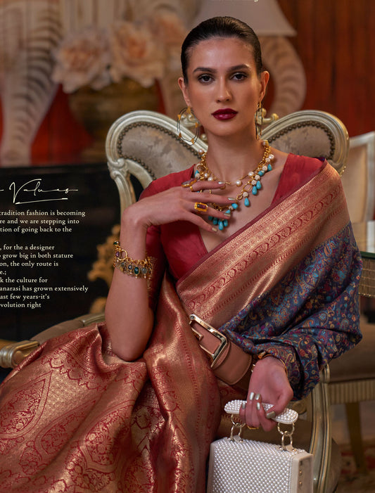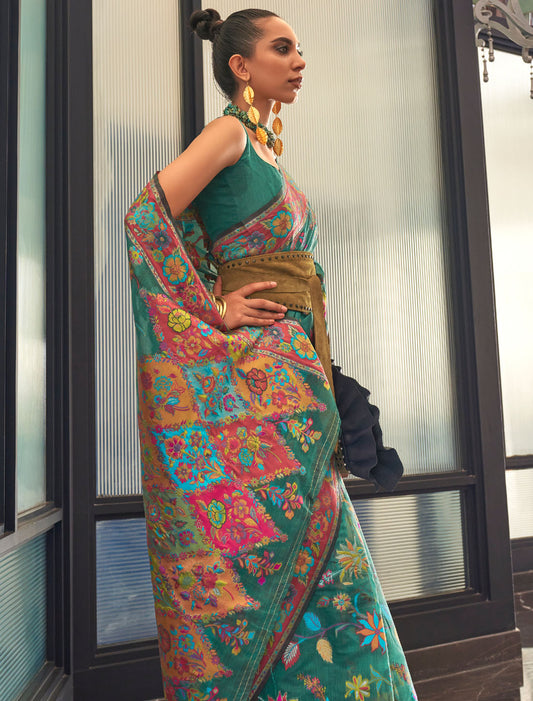 Regal Kashmiri Chaap Handloom Weaving Modal Saree