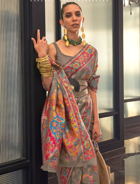 Handloom Chic Modal Kashmiri Chaap Weaving Saree