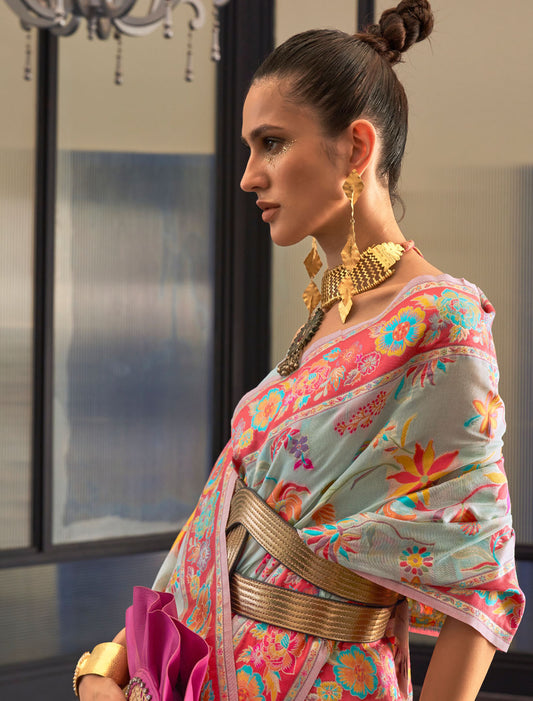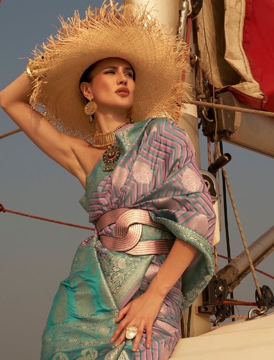 Enchanting Multi Weaving Zari Tissue Handloom Women Saree
