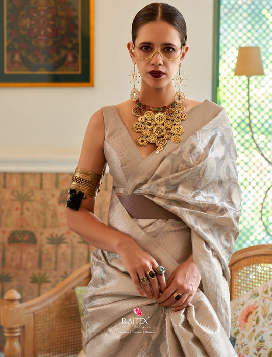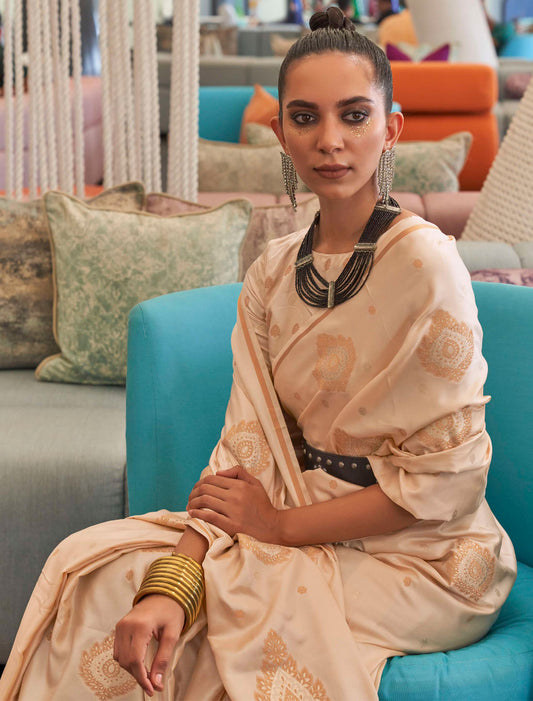 Beige Classic Silk Handloom Weaving Party Wear Saree