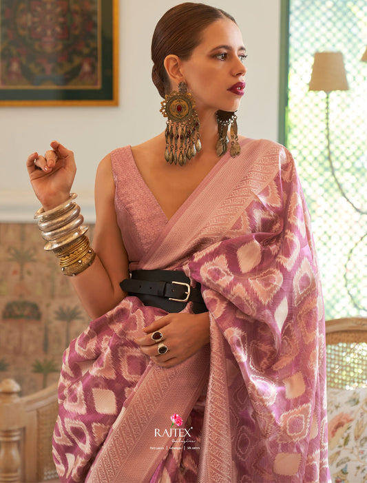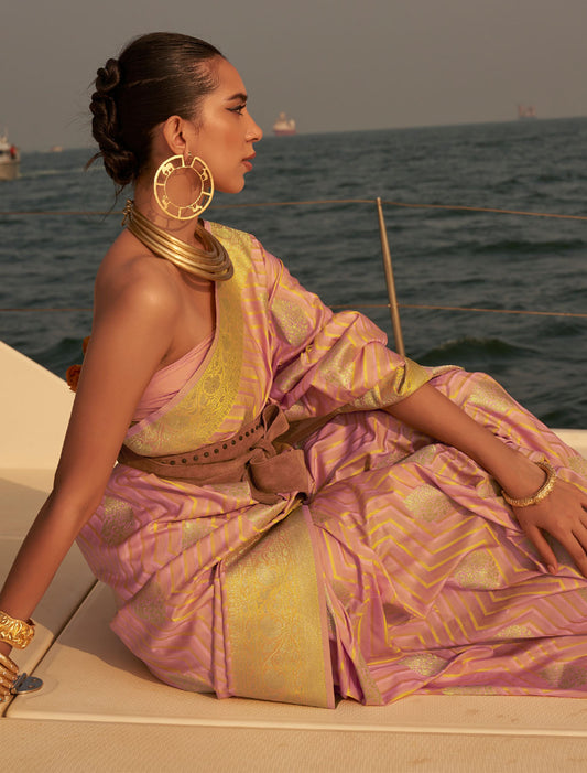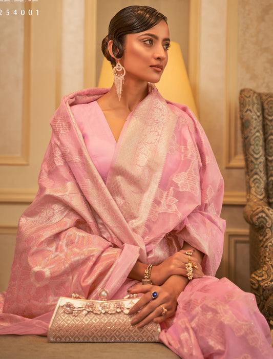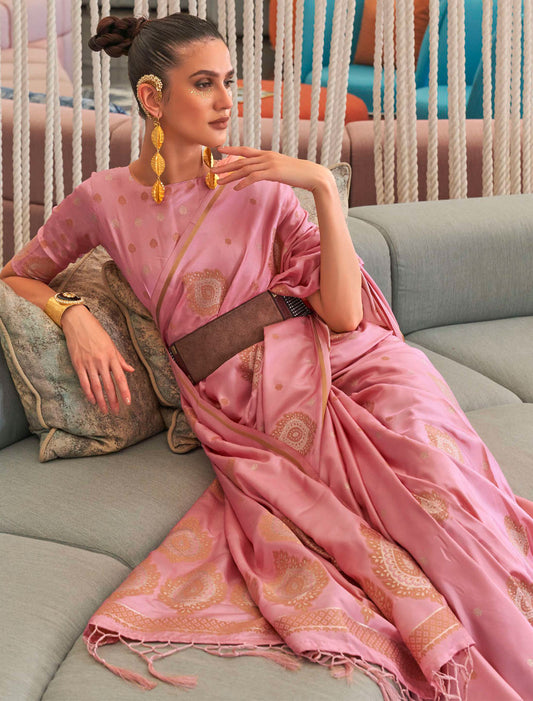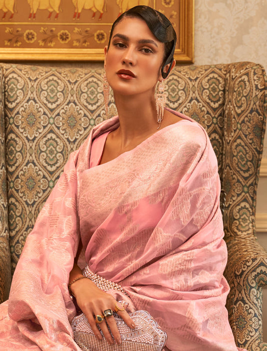 Pink Graceful Party Wear Handloom Weaving Silk Saree