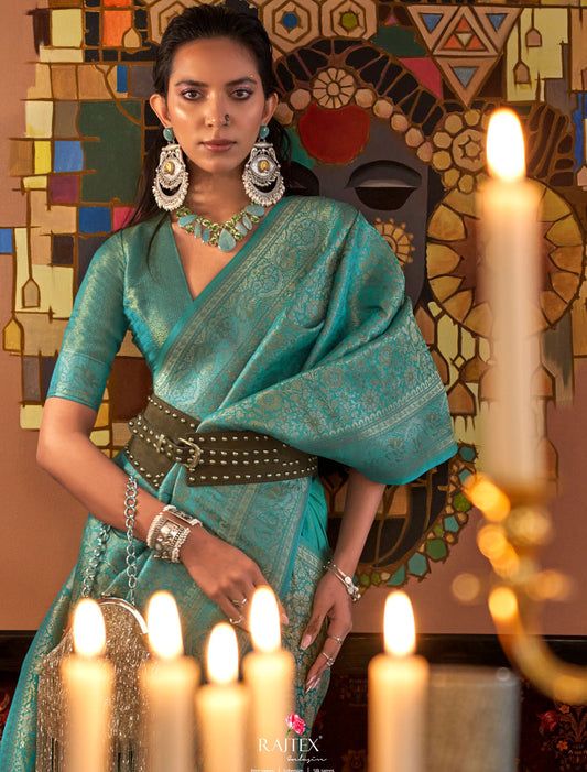 Regal Two Tone Mutli Zari Handwoven Weaving Silk Party Wear Saree