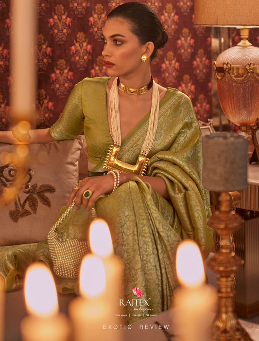 Luxurious Weaving Two Tone Zari Handloom Party Wear Silk Saree
