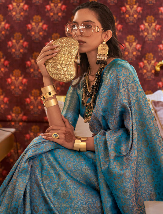 Ethereal Handloom Party Wear Two Tone Mutli Zari Weaving Silk Saree