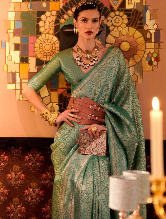 Intricate Party Wear Handloom Weaving Two Tone Zari Silk Saree
