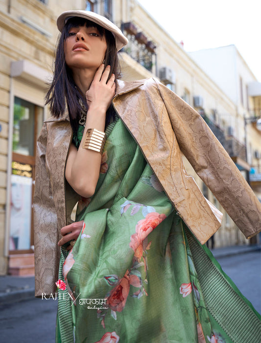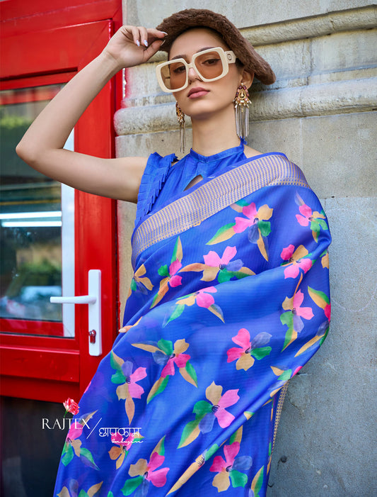 Regal Women Radiance Print Satin Organza Weaving Saree