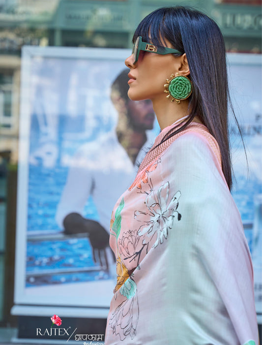 -35% OFFRadiant Rose Satin Crepe Print Saree
