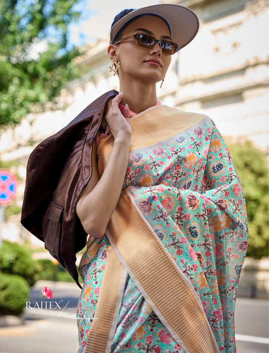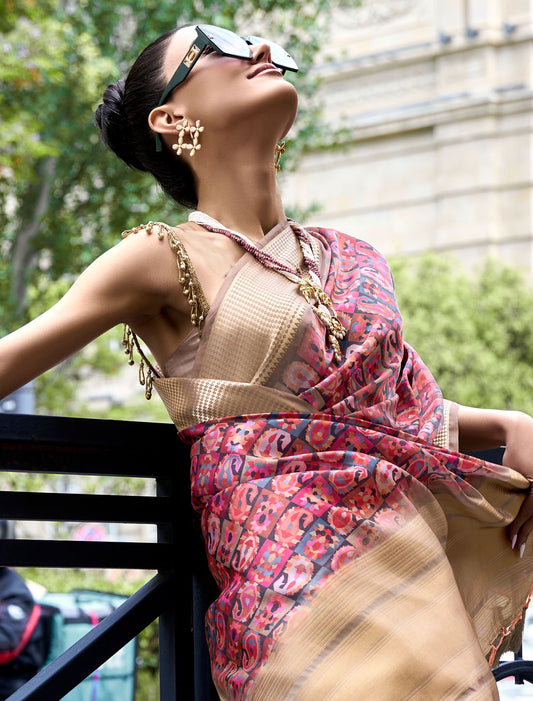 Timeless Women Treasures Print Satin Organza Weaving Saree