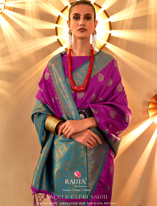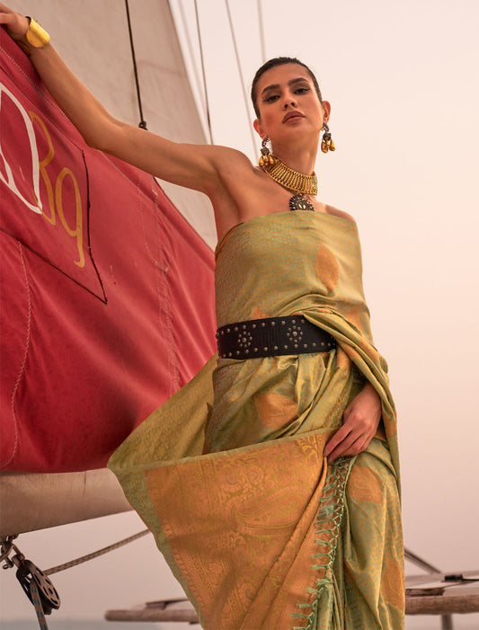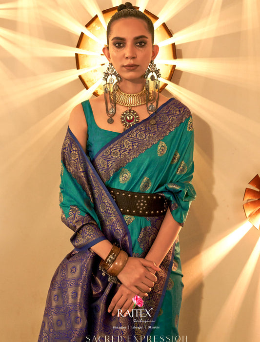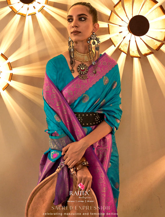 Opulent Two Tone Mutli Zari Handloom Weaving Silk Party Wear Saree