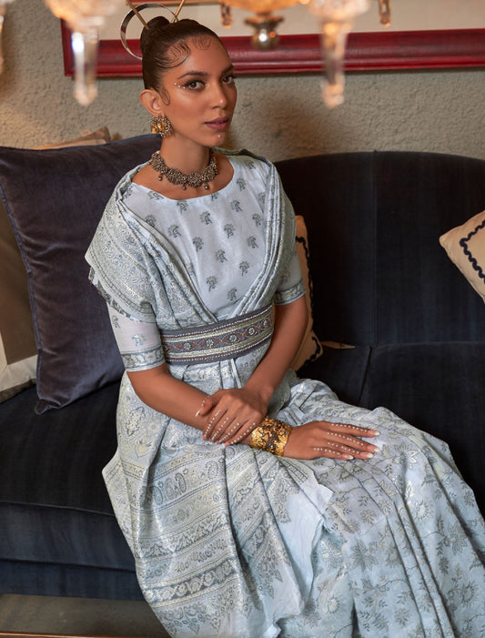 Artistry in Lucknowi Chikankari Zari Handloom Weaving Zari Women Saree