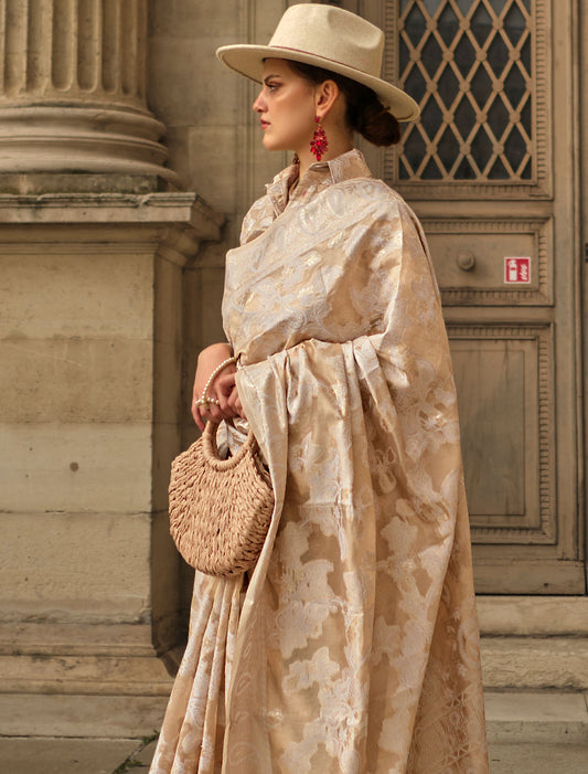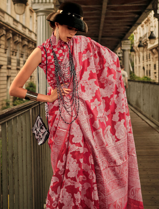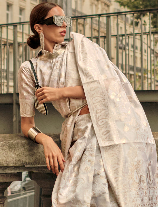 Luxe Affair Weaving Satin Jari Lining Handloom Silk Saree For Women