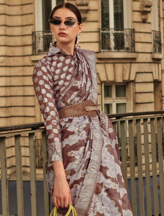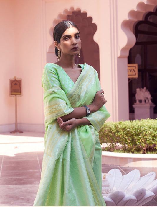 Luxe Organza: Lucknowi Zari Chikankari Handloom Weaving Saree For Women