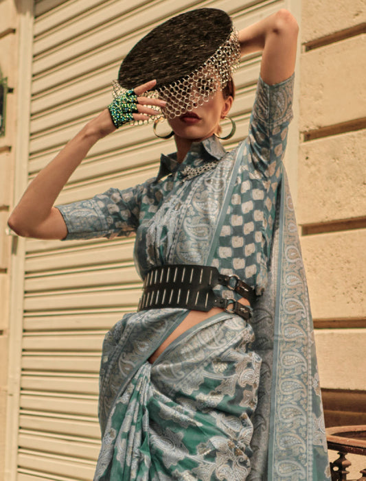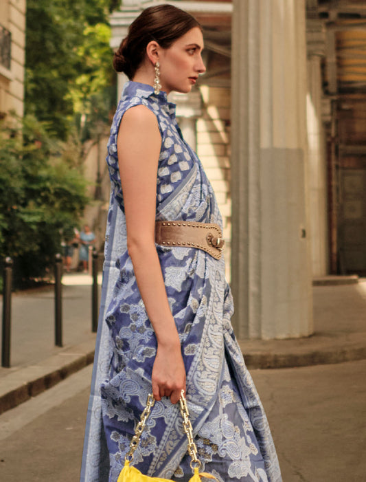 Modern Women Elegance Print Poly Viscose Handloom Weaving Saree