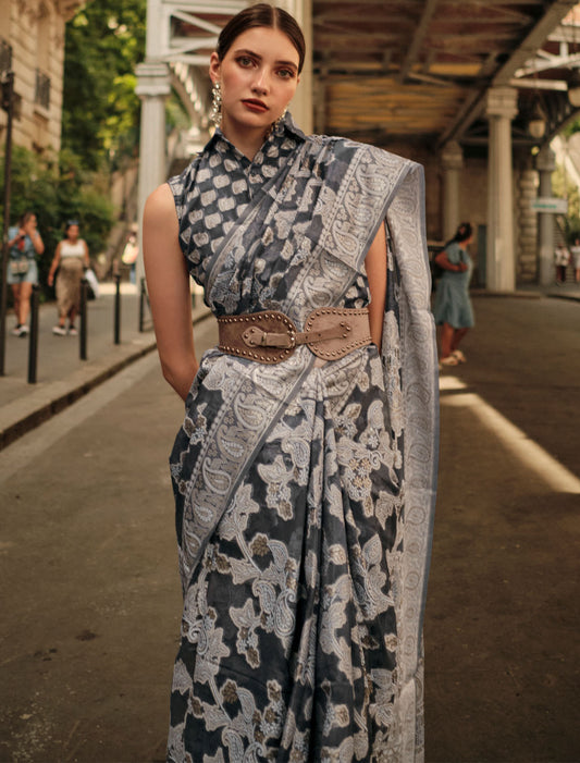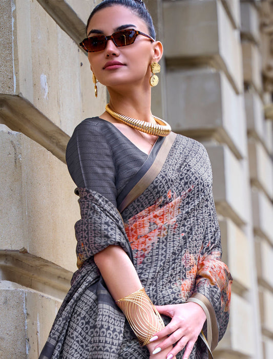 Grey Chic Charm With Thread and Multiple Sequins Embroidery Georgette Embroidered Saree