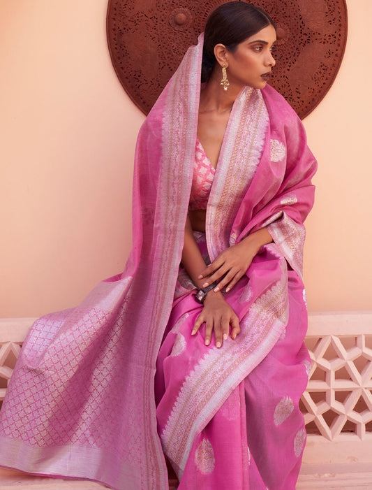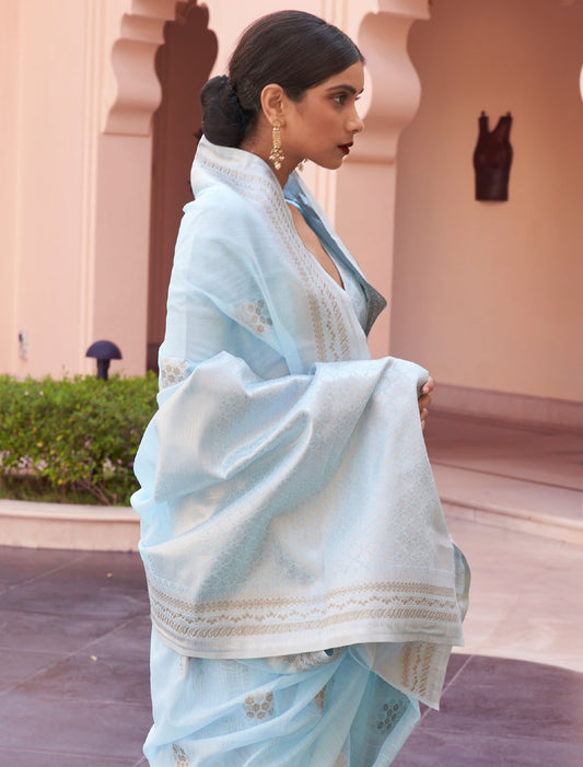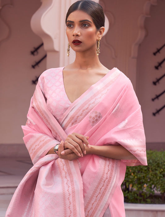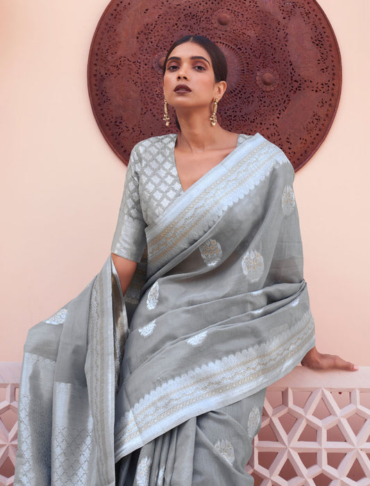 Timeless Festivity Pure Linen Handloom Weaving Saree For Women