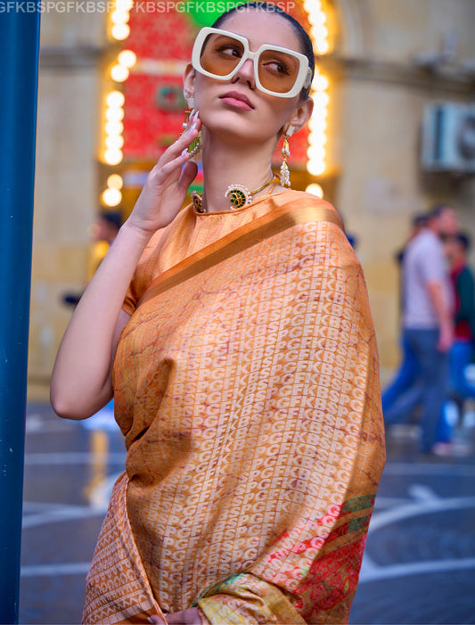 Chic Patterns Poly Viscose Print Handloom Weaving Saree For Women