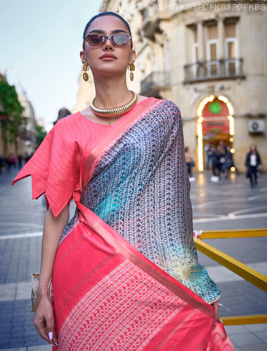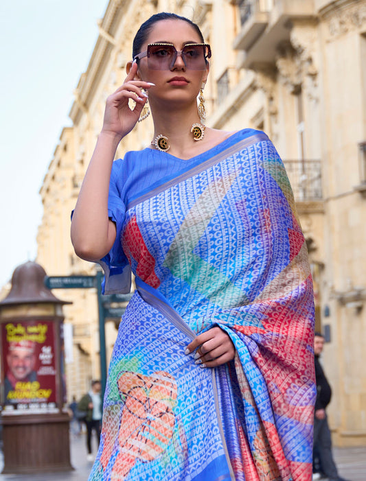 Vibrant Poly Viscose Fiesta handloom weaving Print Saree For Women