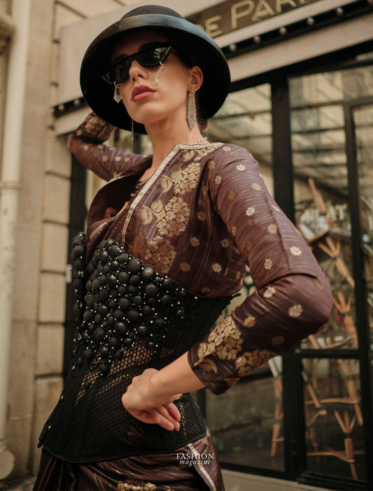 Elegance Redefined Women Satin Silk Jari Lining Handloom Weaving Saree
