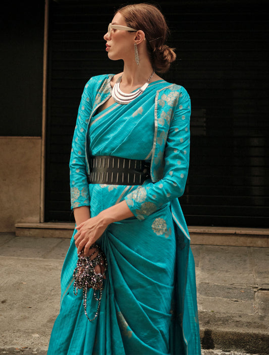 Chic Women Charm Weaving Satin Jari Lining Handloom Weaving Silk Saree