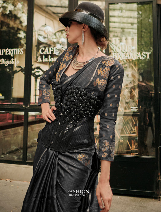 Starry Nights Handloom Weaving Jari Lining Satin Silk Saree For Women