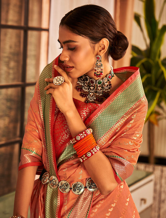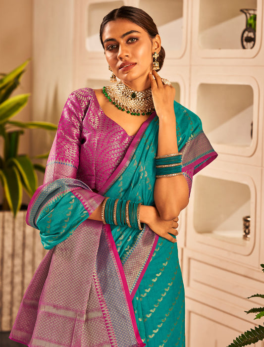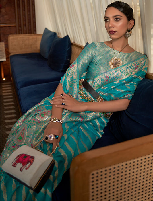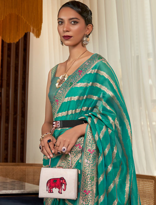 Timeless Meenakari Organza Two-Tone Meenakari Weaving Designer Saree For Women