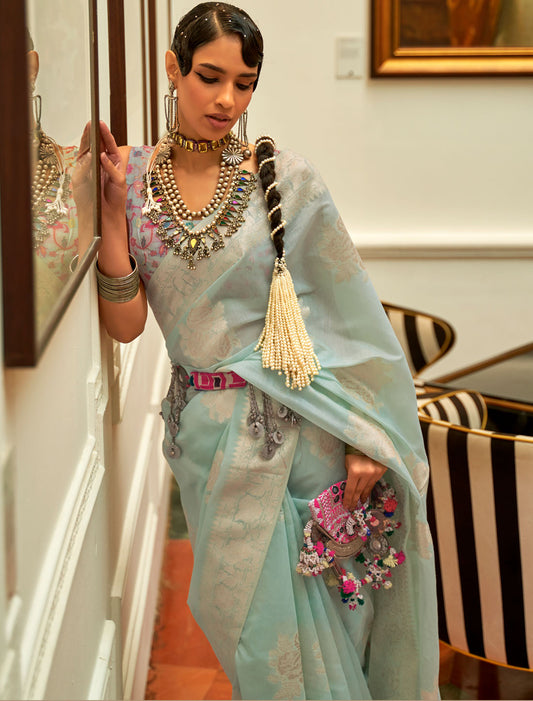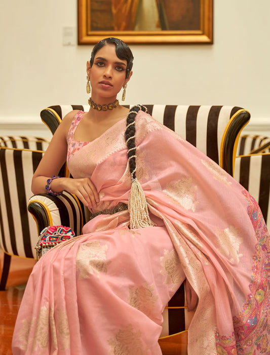 Ethereal Elegance Organza Two-Tone Meenakari Weaving Designer Saree For Women