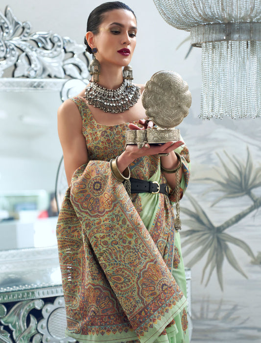 Enchanting Modal Kashmiri Silk Handloom Weaving Saree For Women