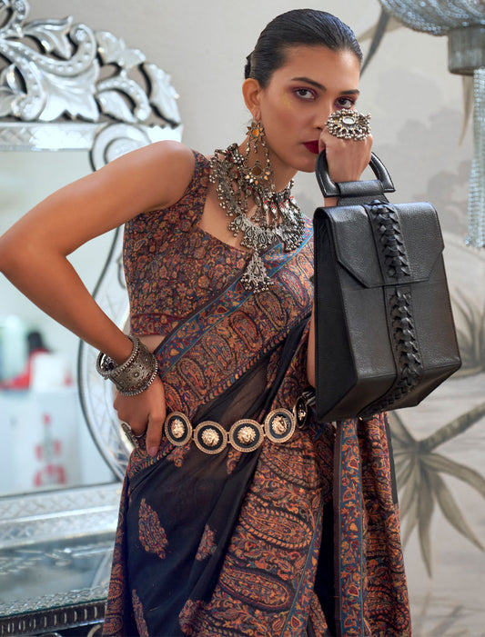 Kashmiri Whirlwind Modal Pallu And Blouse Handloom Weaving Fancy Saree For Women