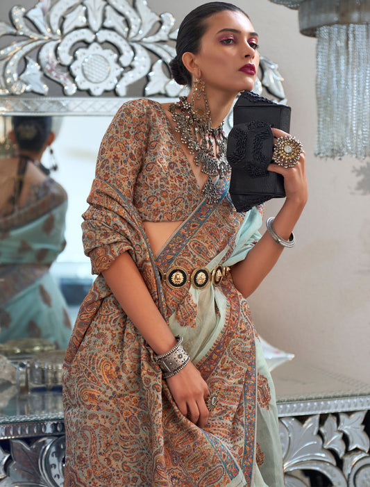 Silk Marvel Modal Kashmiri Handloom Weaving Saree For Women