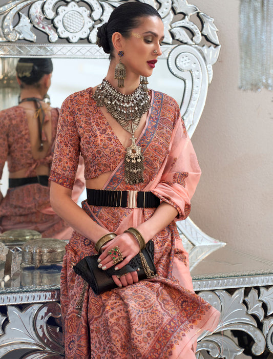 Modal Magic Kashmiri Pallu And Blouse Handloom Weaving Fancy Saree For Women