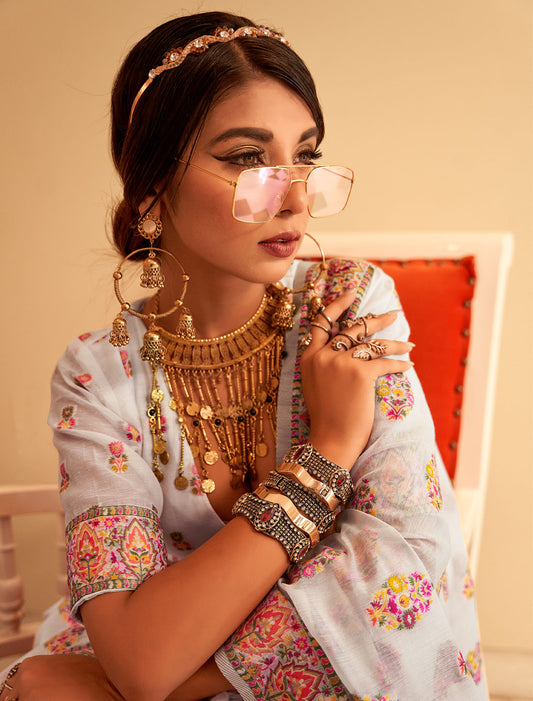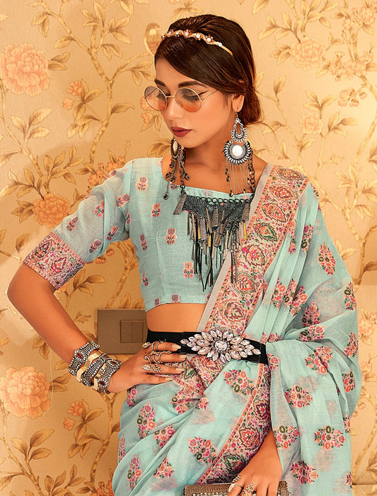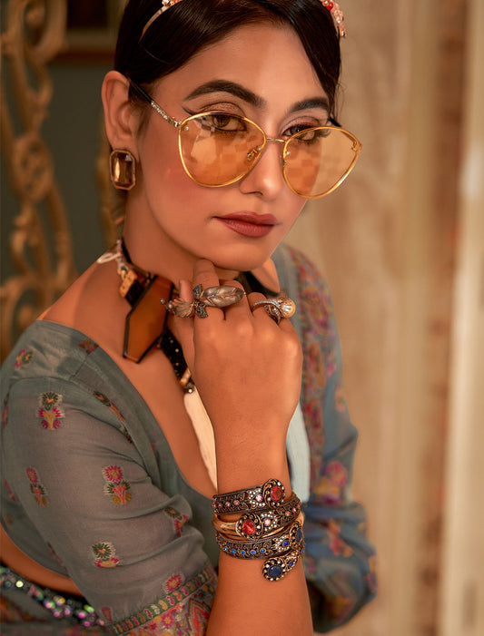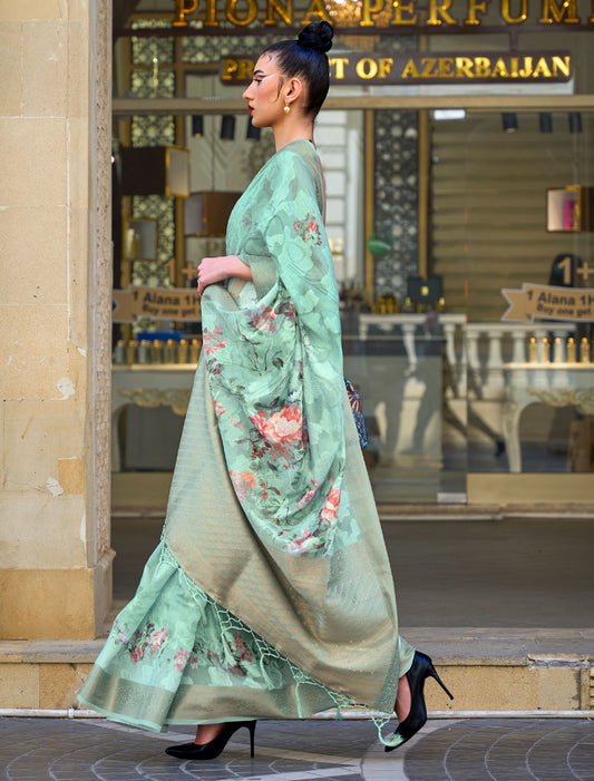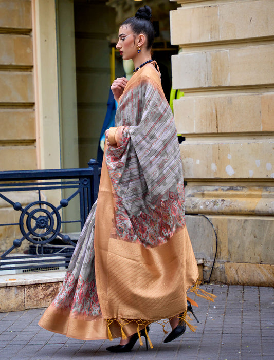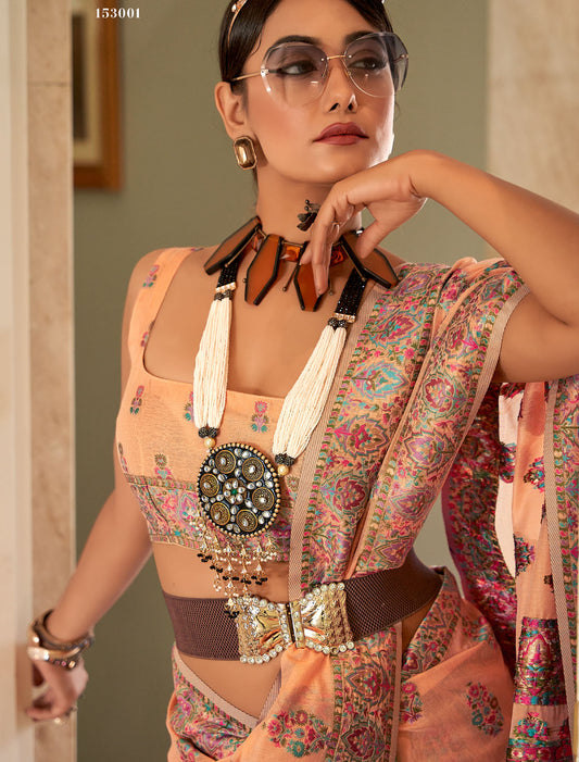 Spectacular Sequins: Printed Handloom Poly Brasso Saree Ensemble