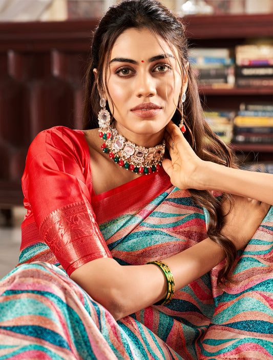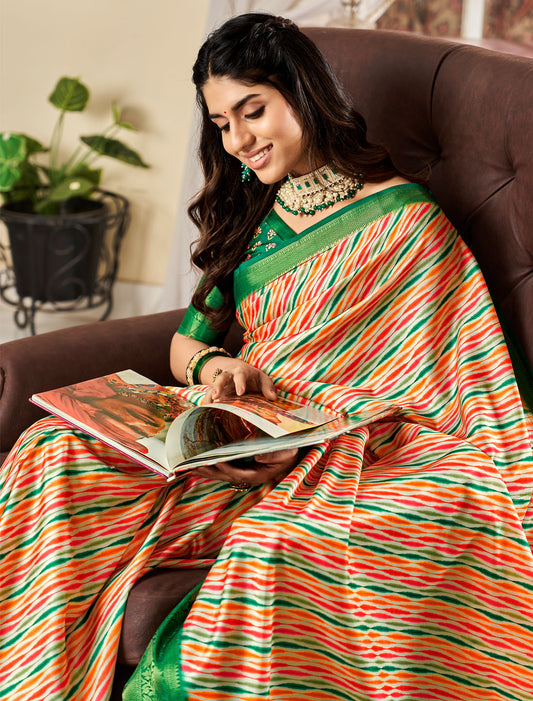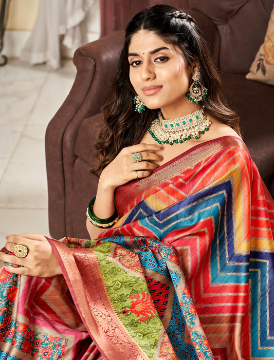 Satin Crepe Splendor: Vibrant Digital Print Saree with Blouse for Stylish Affairs