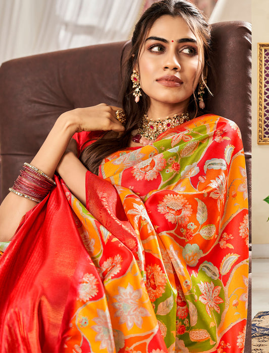 Floral Fantasy Duo: Digital Satin Crepe Saree with Blouse for Celebrations