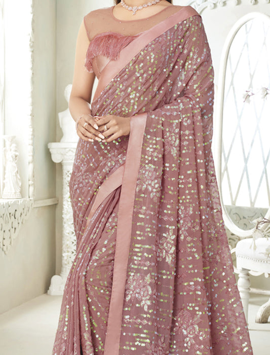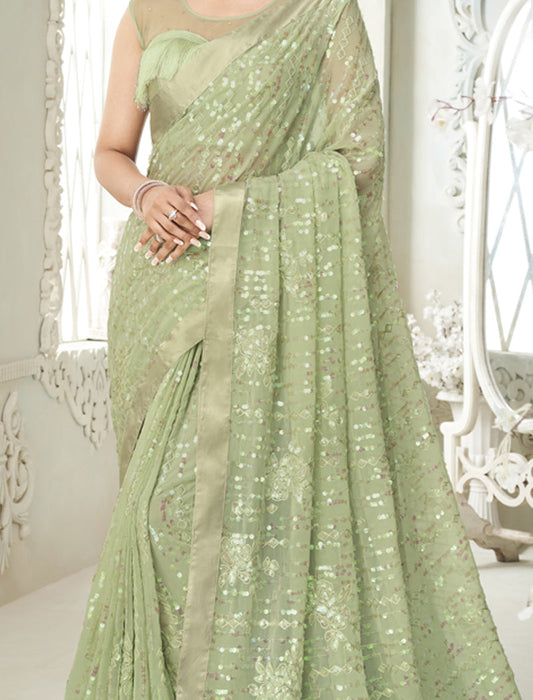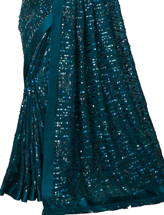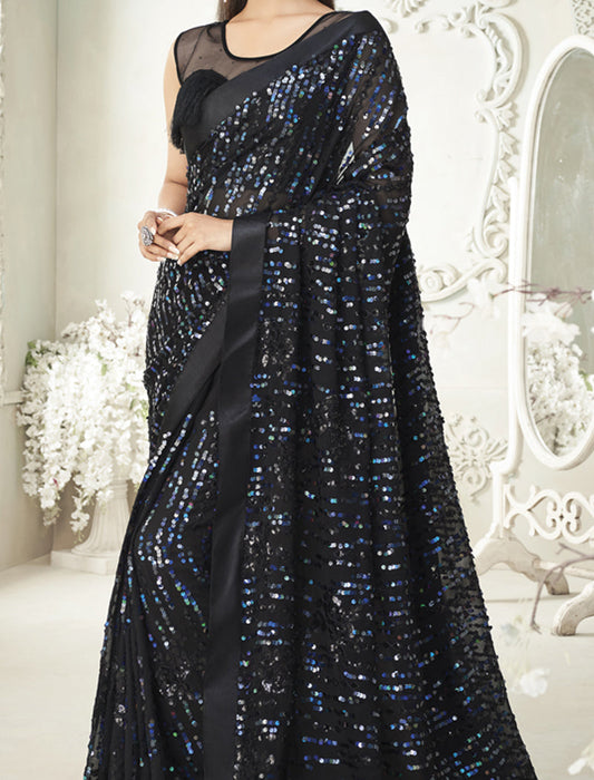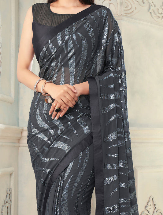 TFH Fancy Sequence Georgette Party Wear Designer Sarees For Women