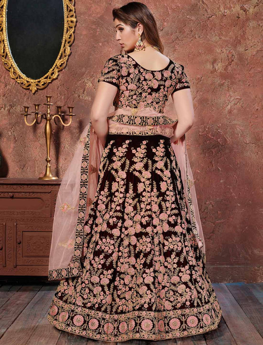 Dark Maroon Velvet Thread Sequins Embroidery Designer Ethnic Lehenga Choli