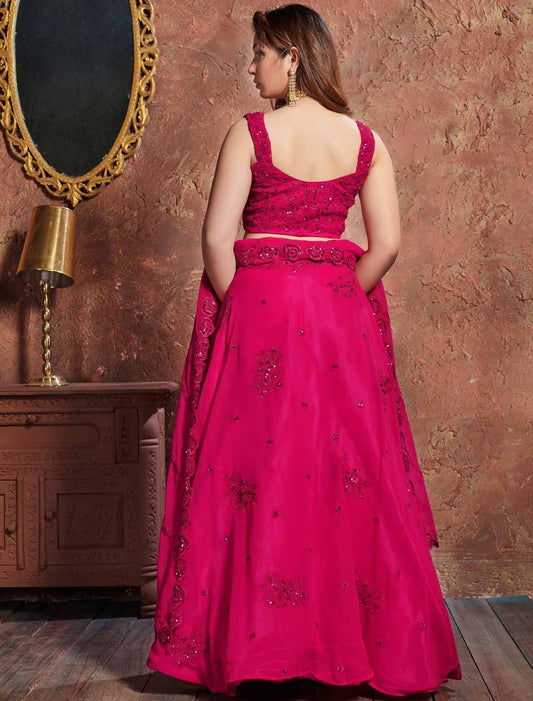 Pink Designer Wedding Georgette Lehenga Choil Set Thread Embroidery