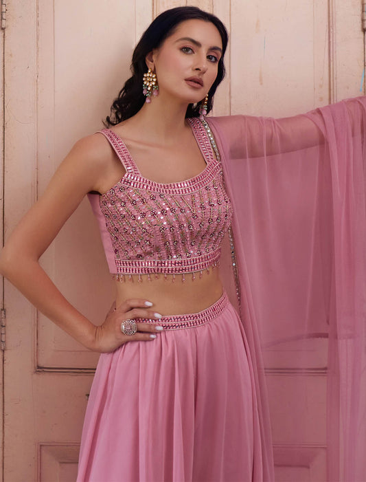 Pink Wedding Sharara & Choli Wedding Readymade Set For Women With Georgette Fabric