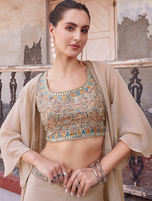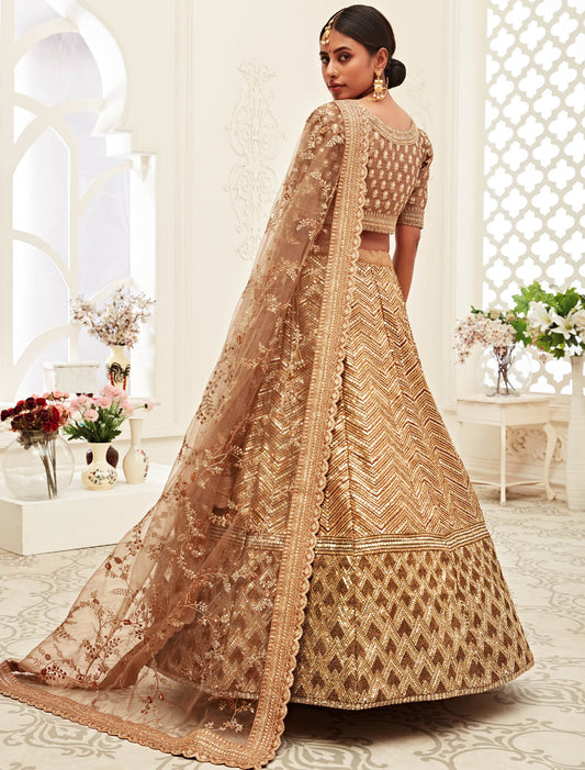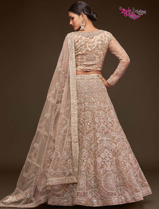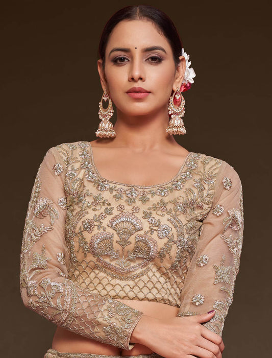Royal Beige Women Ethnic Semi Stitched Lehenga Choli For Wedding With Mesmerizing Glitter Embroidery Work