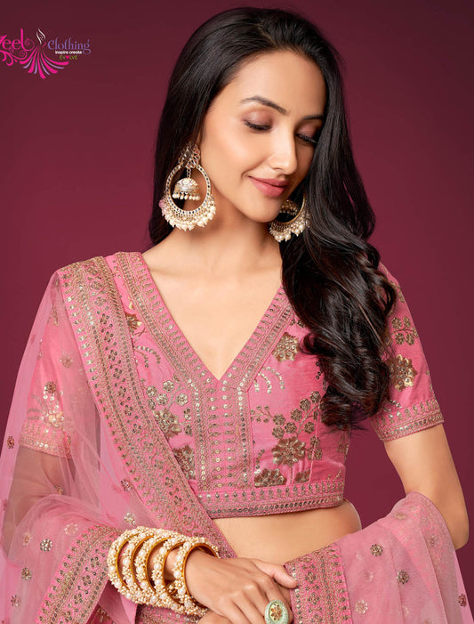 Pink Soft Silk Semi Stitched Wedding Lehenga Choli Timeless Elegance For Women