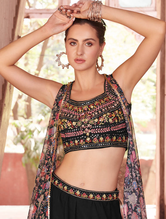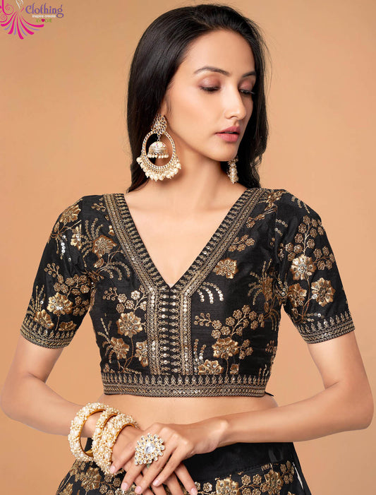 Black Semi Stitched Organza & Georgette Ethnic Lehenga Choli For Women