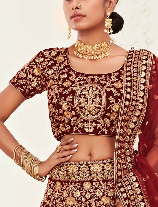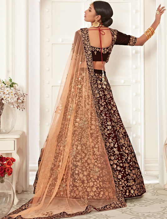 Maroon Ethnic Velvet & Soft Net Dupatta Exquisite Women Lehenga Choli