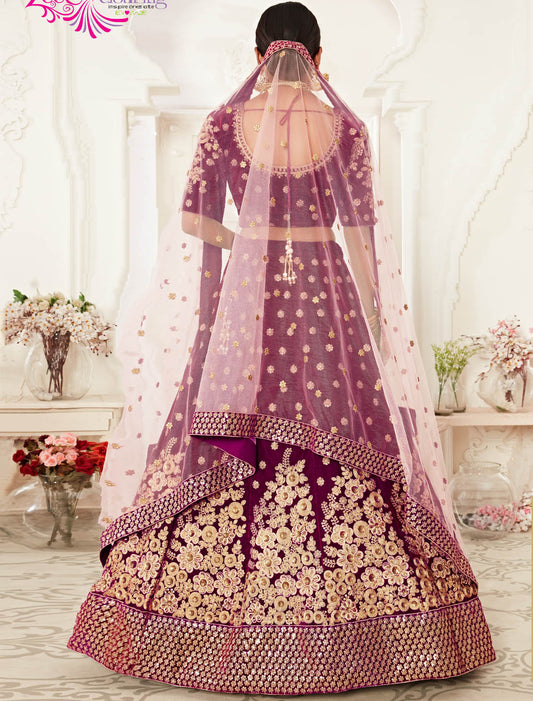 Purple Ethnic Velvet & Soft Net Dupatta Women Lehenga Choli