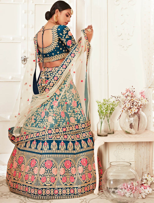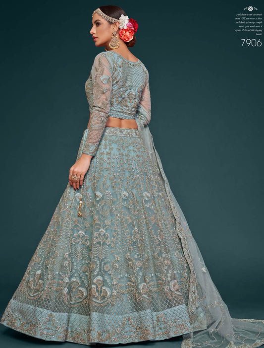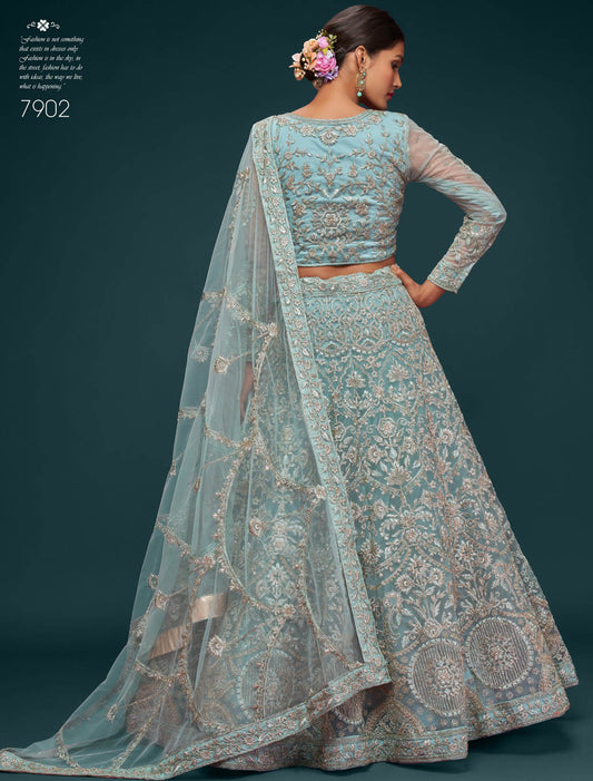 Ocean Aqua Women Ethnic Semi Stitched Lehenga Choli For Wedding With Subtle Brilliance Embroidery Work