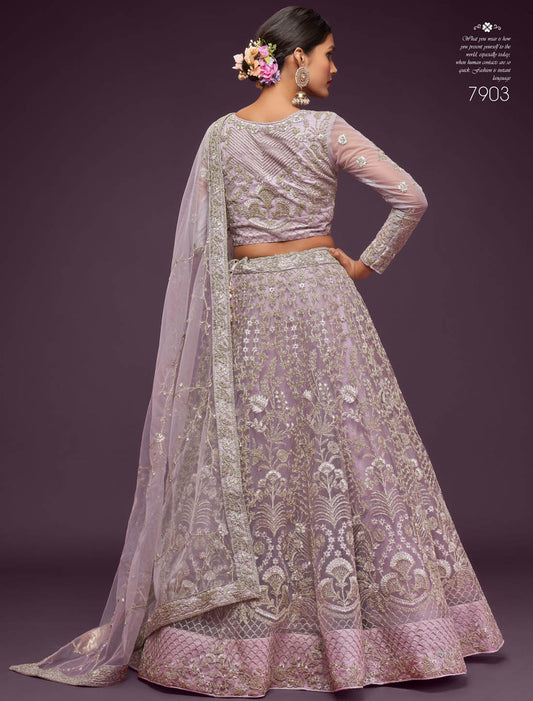 Dusky Orchid Ethnic Wedding Semi Stitched Lehenga Choli For Women With Luxurious Design
